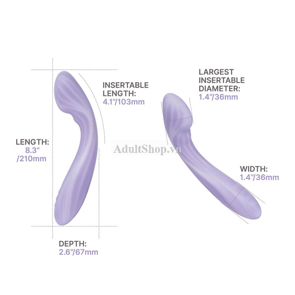 Sản phẩm sở hữu thiết kế cong công thái học, phần đầu nghiêng nhẹ giúp tiếp cận chính xác điểm G, trong khi thân máy mềm mại ôm sát đường cong cơ thể. Toàn bộ bề mặt được phủ silicone y tế cao cấp hai lớp, mang lại cảm giác mịn, êm và an toàn khi sử dụng lâu dài.