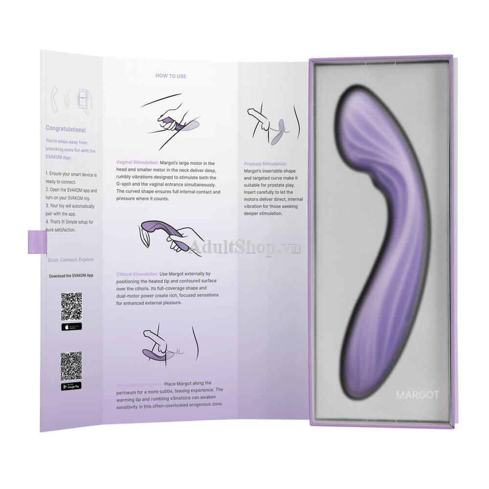 Svakom Margot là dòng máy rung điểm G cao cấp tích hợp dual-motor, được thiết kế dành cho những trải nghiệm khoái cảm sâu, lan tỏa và tự nhiên hơn so với các mẫu máy rung thông thường. Lấy cảm hứng từ nhu cầu kích thích đa điểm của phái nữ hiện đại, Margot mang đến sự kết hợp hài hòa giữa rung động bên trong và bên ngoài, giúp cơ thể dễ dàng hòa nhịp và đạt cao trào trọn vẹn.